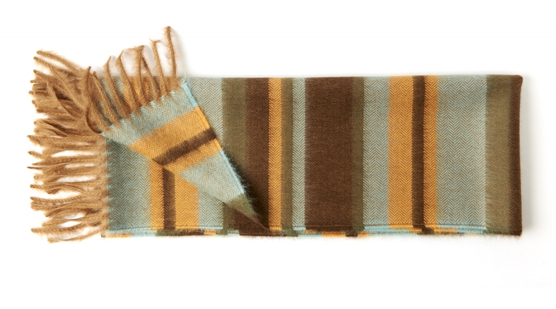 Warmer und weicher 100% Baby Alpaka Schal in dezentem Streifenmuster. Fransen an beiden Enden